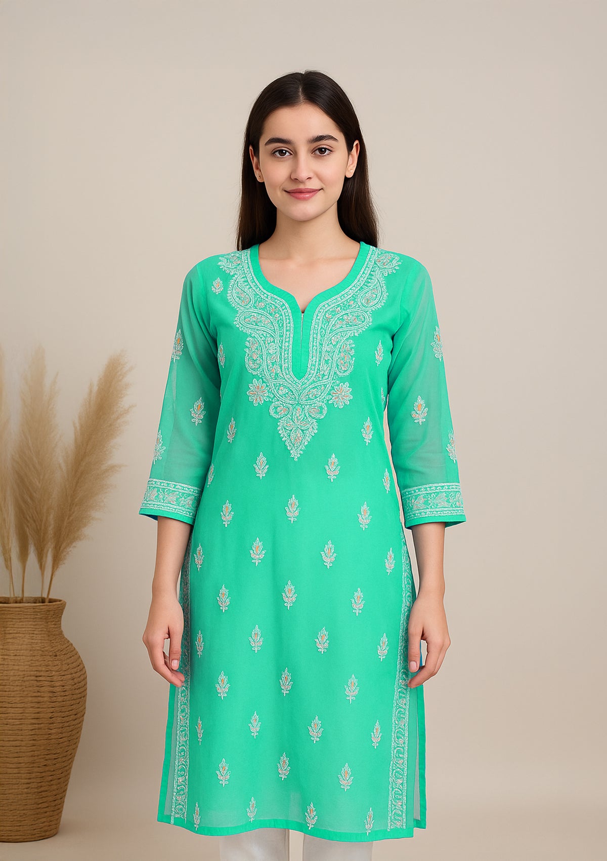 Aqua Green Georgette Kurti with Gota Patti Embroidery
