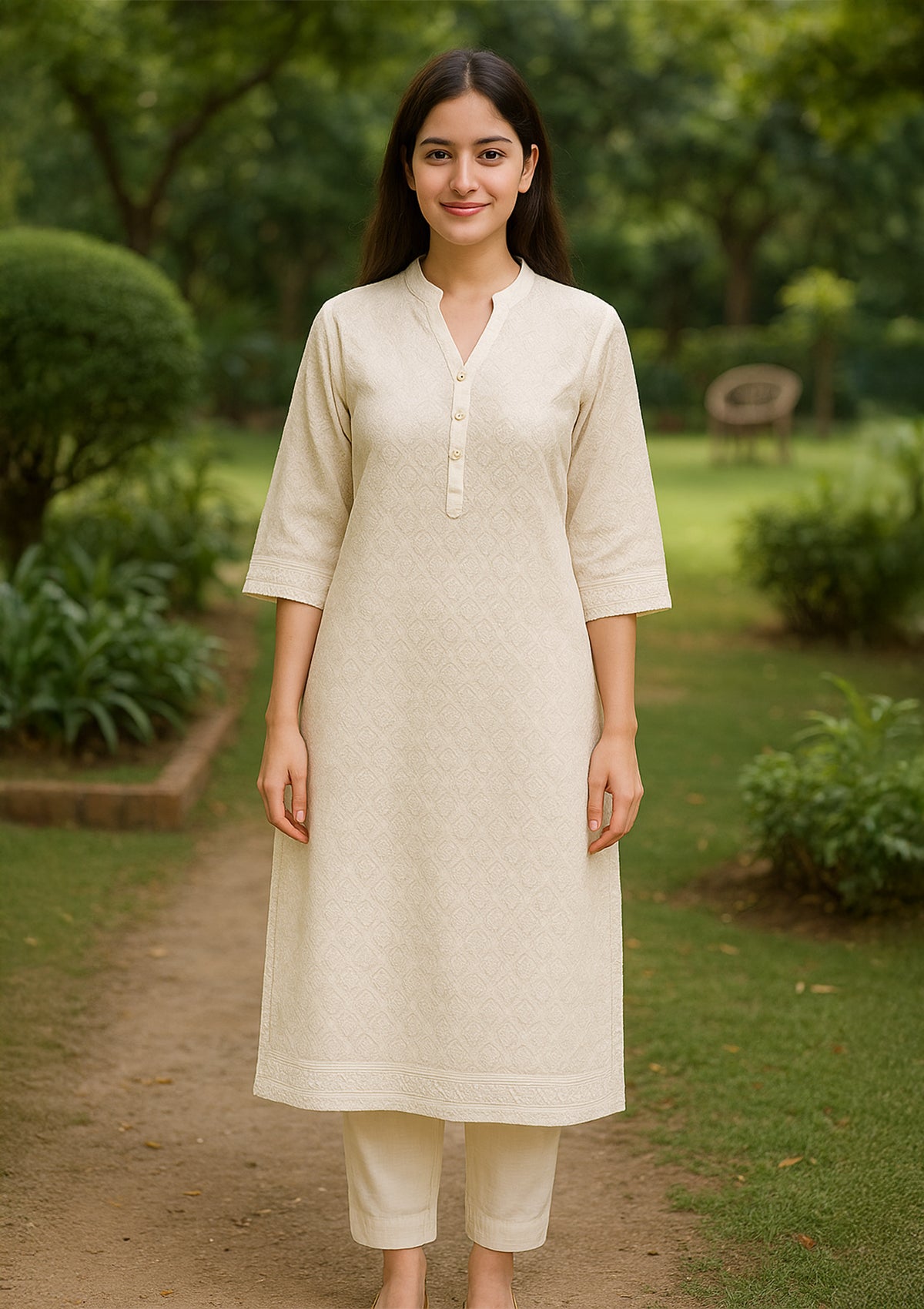 Chikankari Solid Women’s Long Kurta – Off-White
