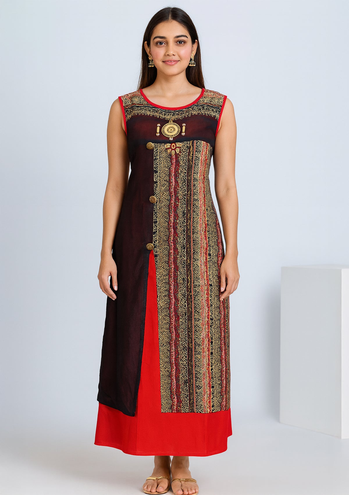 Designer Printed Georgette Gown in Red & Black – XXL