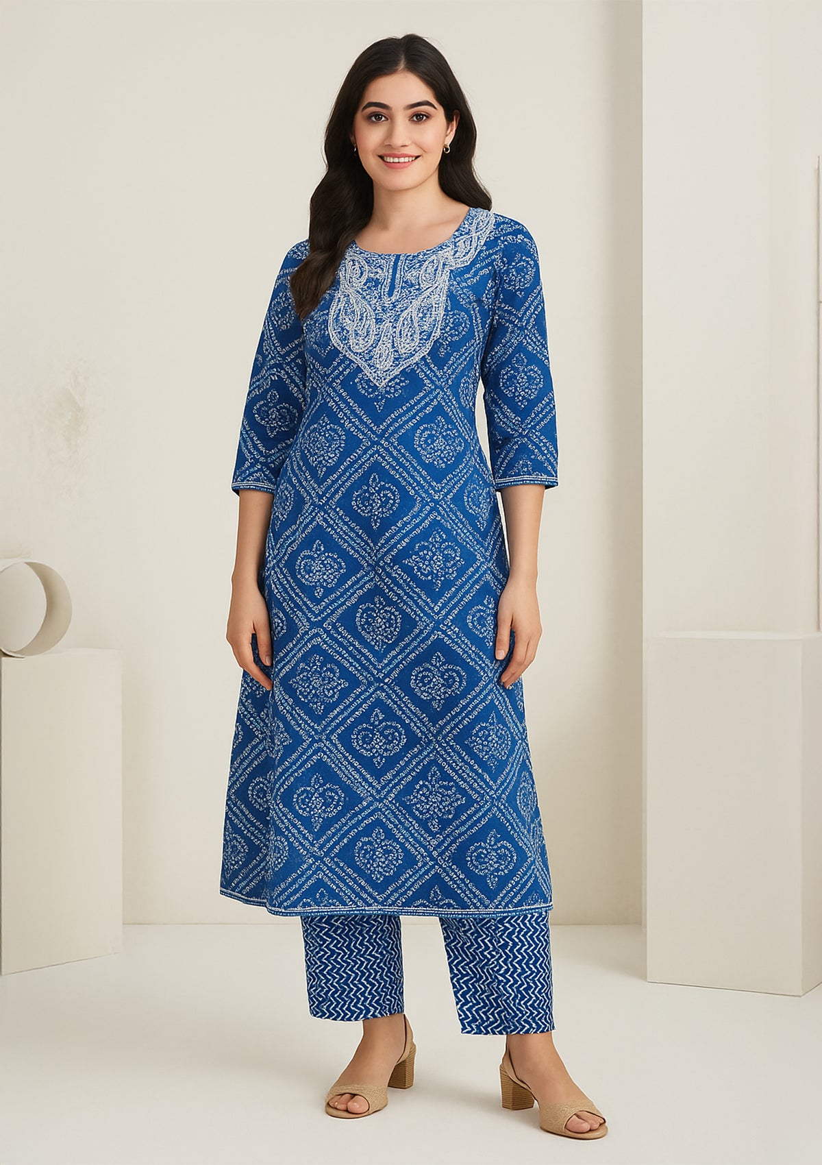 Step into elegance with this beautifully designed Blue Cotton Stitched Kurti Set, perfect for everyday comfort as well as festive gatherings.