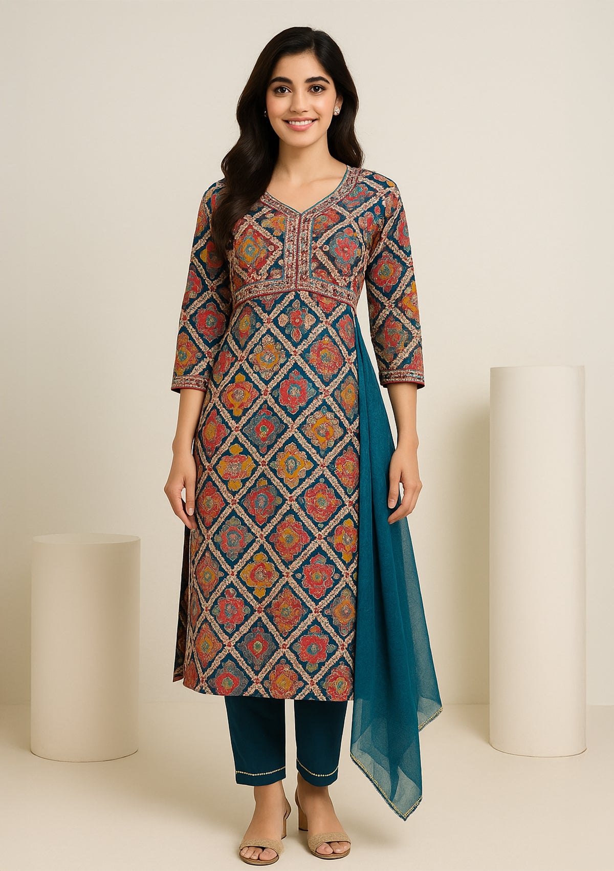 Set Includes: Kurta + Pant + Dupatta (Complete suit set)