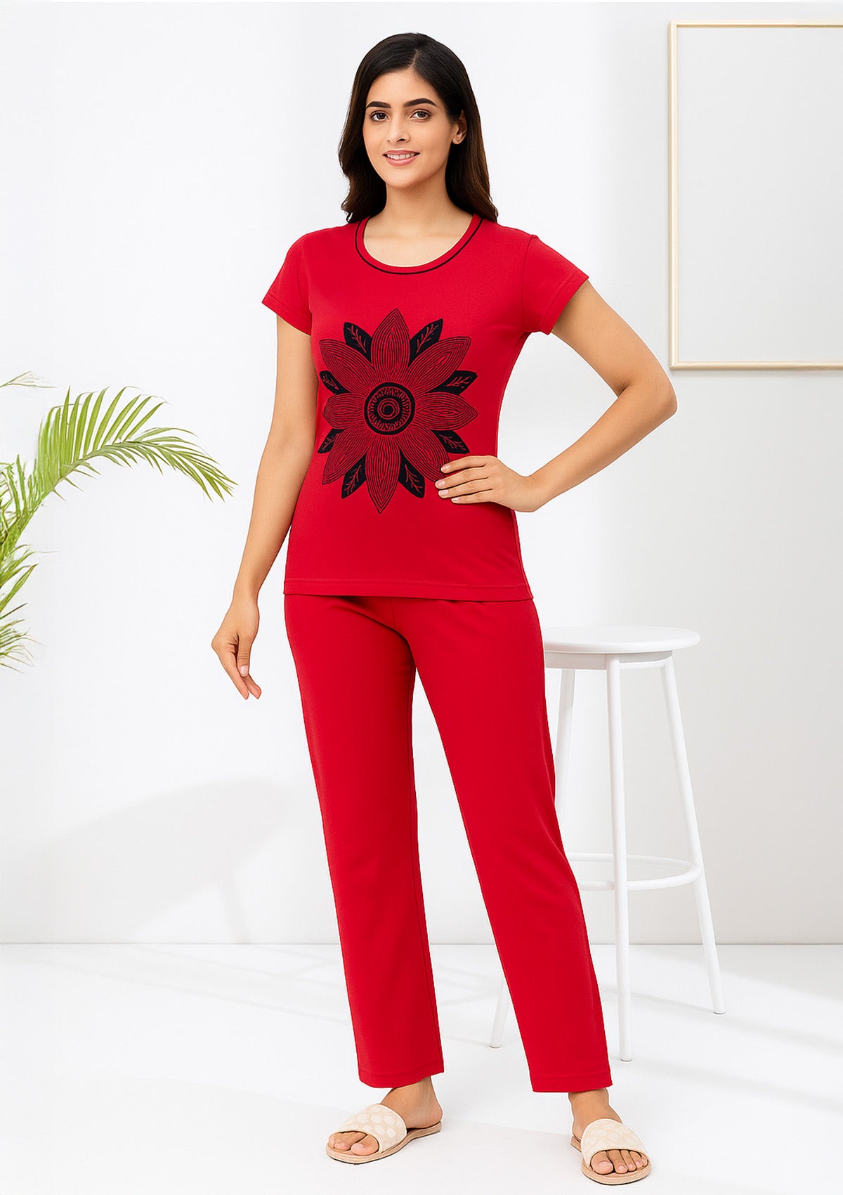 Red Lounge Set - Graphic Tee & Straight Fit Bottoms