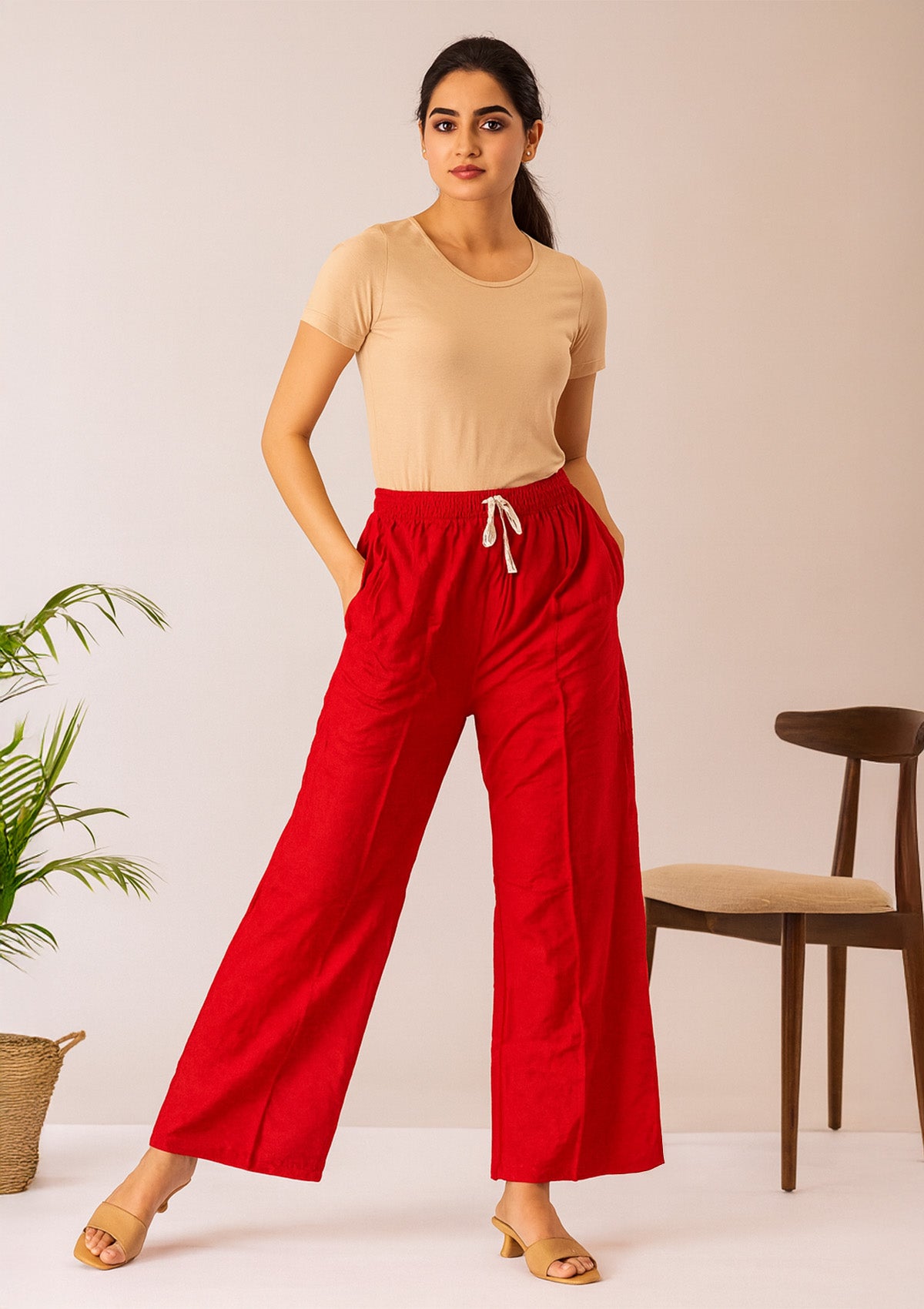 Red Solid Rayon Palazzo For Women – Comfortable XL Size