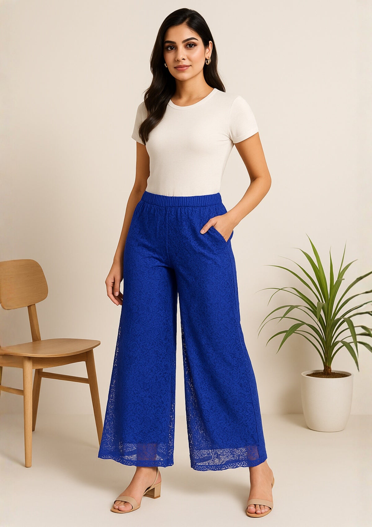 Royal blue net palazzo with full synthetic lining for coverage & comfort