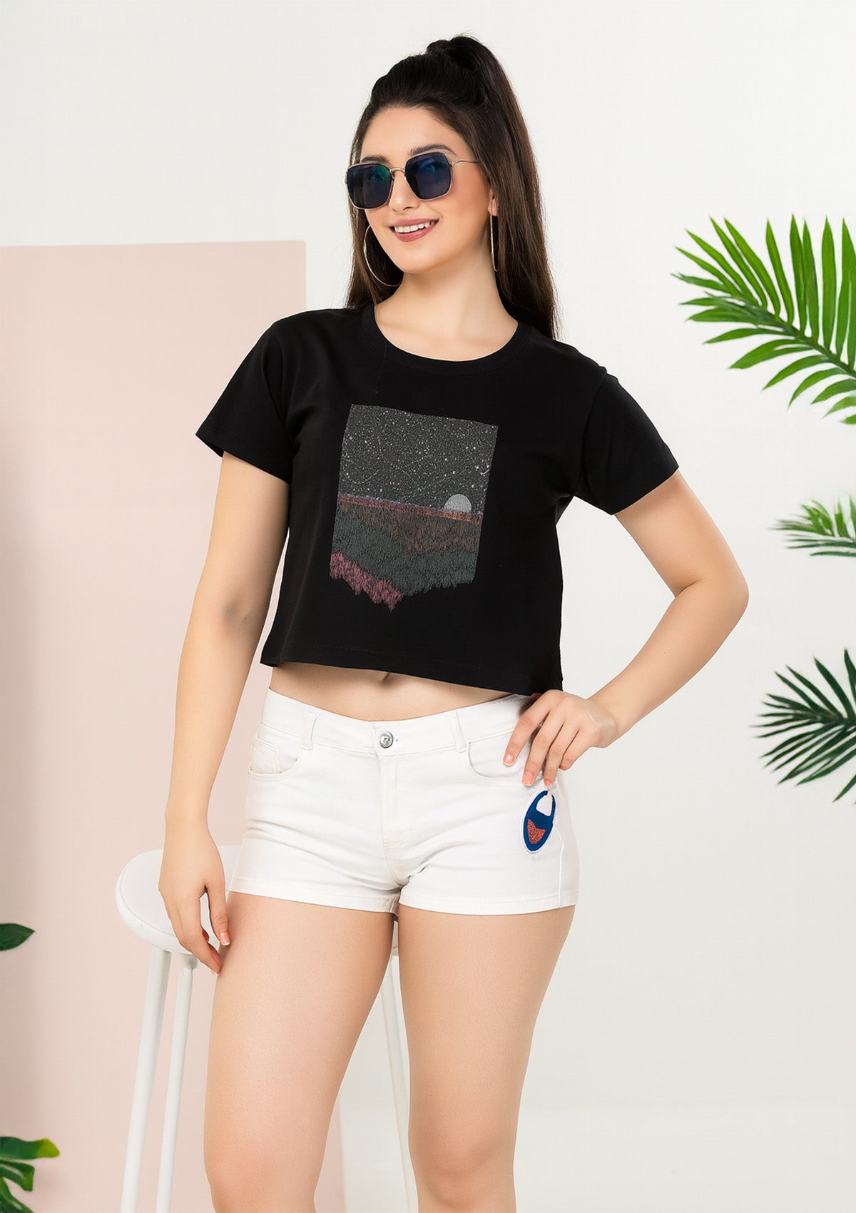 Women’s Graphic Crop Top – Black Cotton Jersey