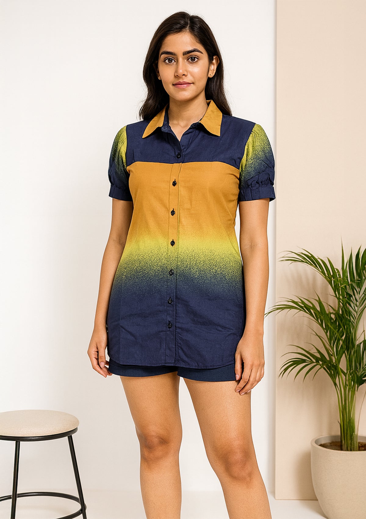 Express fresh style with this women’s cotton shirt in extra small size, featuring a stunning ombre gradient blending navy, mustard, yellow, and green hues. Crisp short sleeves, a smart collar, and button-down design provide a tailored, summery look, while the soft, breathable cotton ensures all-day coolness and comfort. Perfect for work, college, and travel, this casual shirt easily pairs with pants, jeans, or shorts for effortless style.